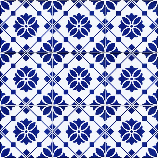 Piastrella in maiolica realizzata con supporto (biscotto) industriale, rivestita con smalto Bianco Vietri prodotto da Ceramica Pinto, e decorata al 100% a mano – con stampa (S).