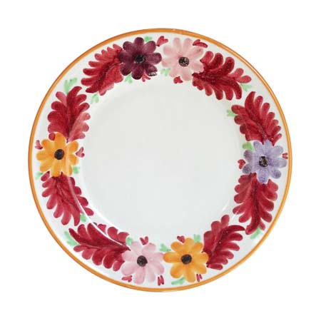 Piatto piano decorato a mano, con disegno tradizionale vietrese; da abbinare con gli altri decori tradizionali e con i piatti colorati di Vietri.