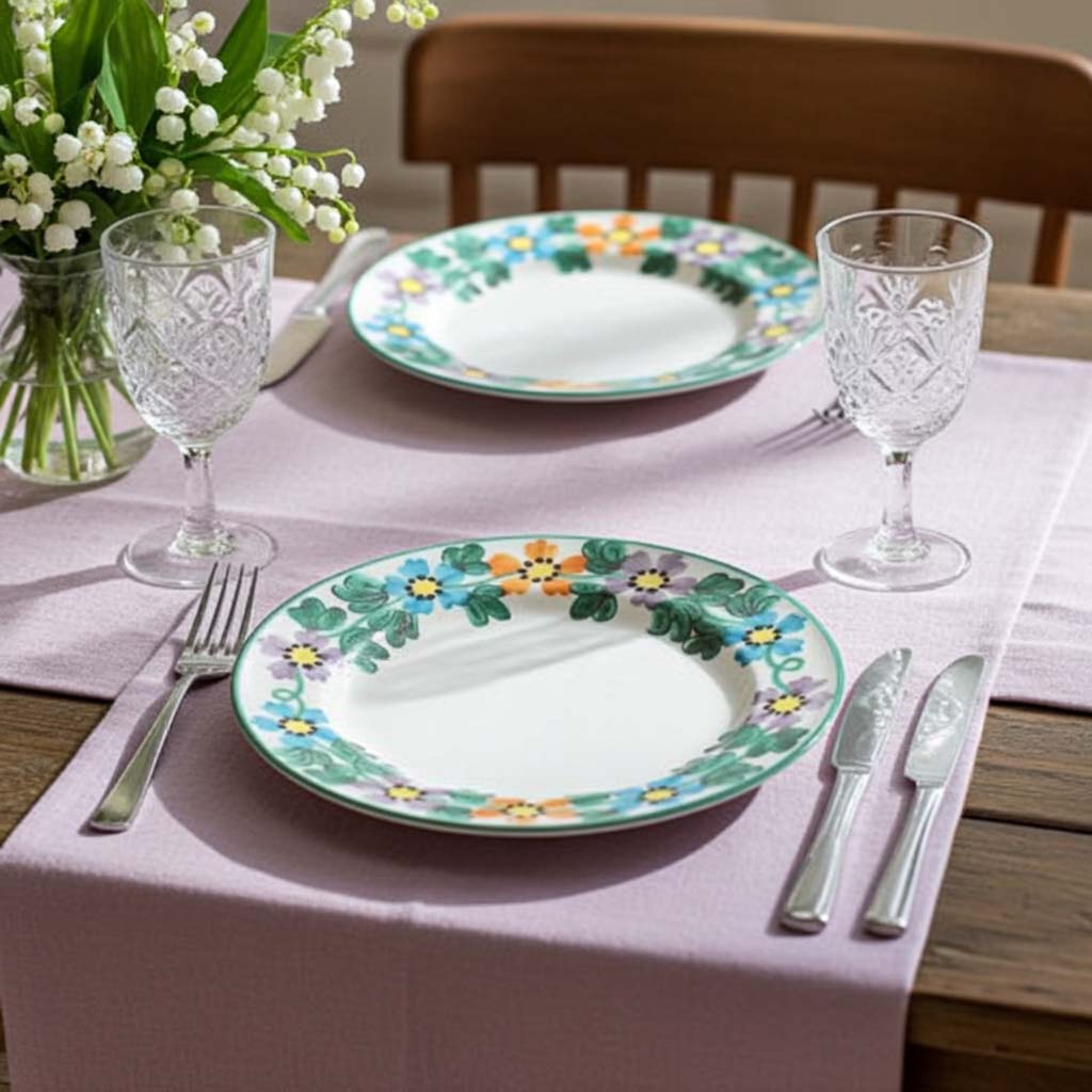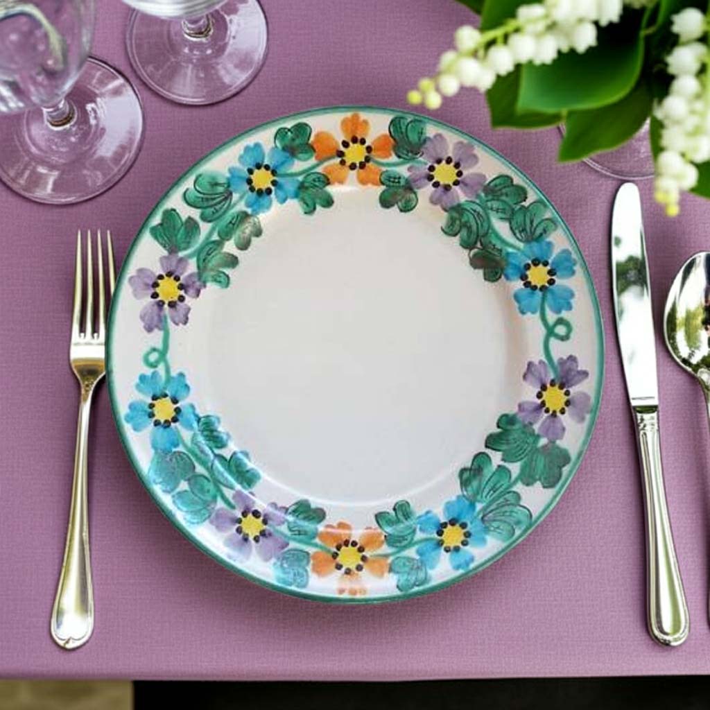 Piatto piano decorato a mano, con disegno tradizionale vietrese; da abbinare con gli altri decori tradizionali e con i piatti colorati di Vietri.
